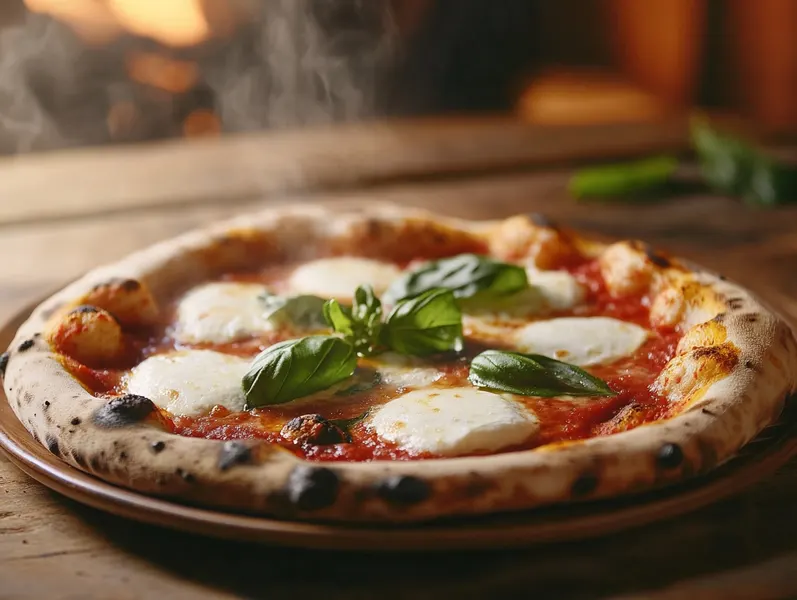 Enfournez 8 à 12 minutes. Le fond doit être croustillant, la mozzarella fondue et dorée. Ajoutez le basilic frais en sortie de four.