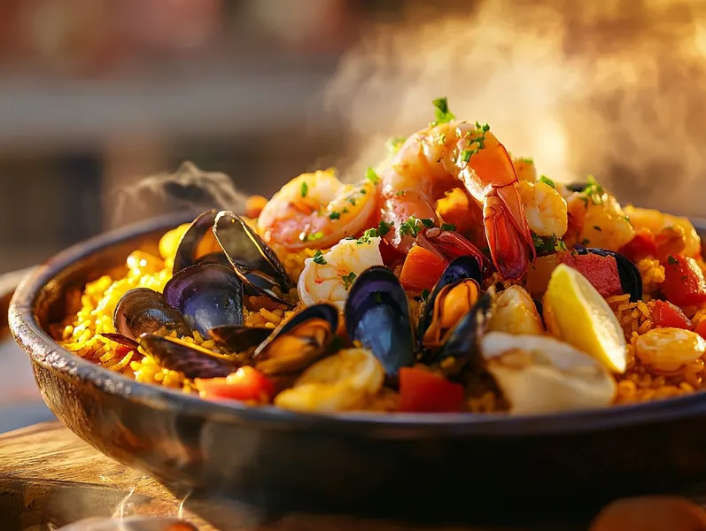 La Paella Valenciana est un plat traditionnel espagnol originaire de la région de Valence. Elle est célèbre pour sa combinaison de riz aromatique, de fruits