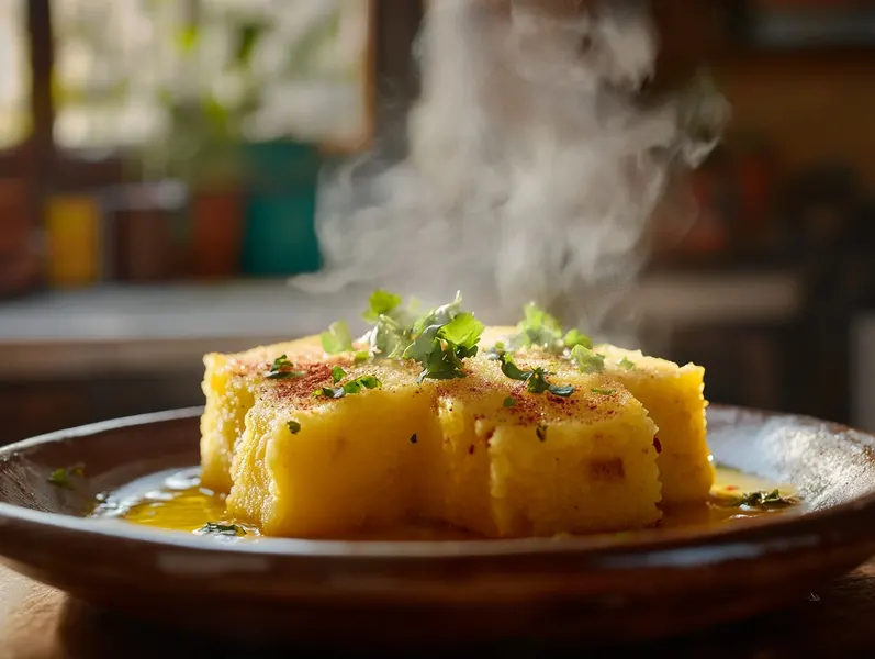 La Dhokla est un mets traditionnel indien très populaire, originaire de l'état du Gujarat. C'est un gâteau salé fabriqué à partir de farine de pois chiches