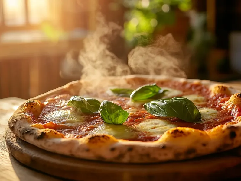 Enfournez 8 à 12 minutes. Le fond doit être croustillant, la mozzarella fondue et dorée. Ajoutez le basilic frais en sortie de four.